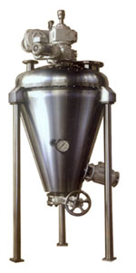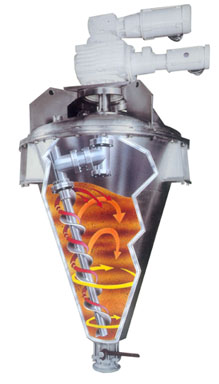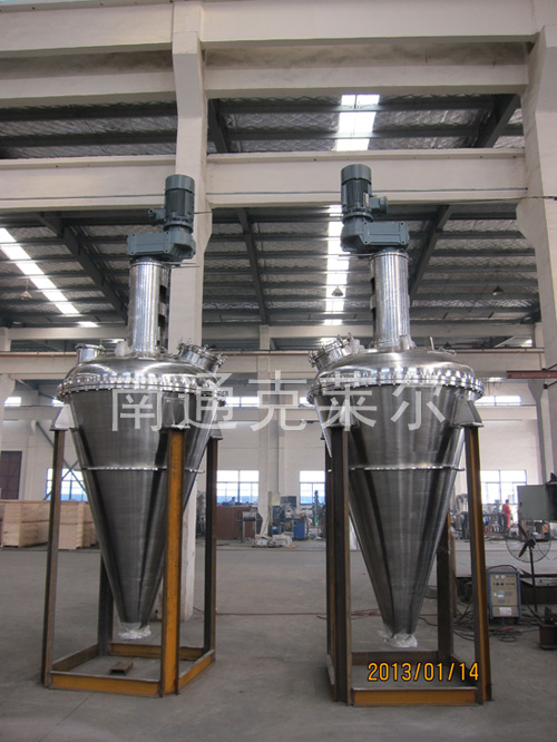 立式锥形混合物机广泛应用于工业生产中各种混合、干燥工艺。该机具有三重混合作用,可以使物料获得较好的混合效果。