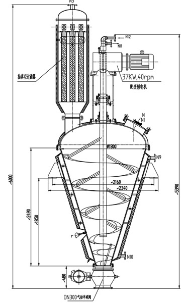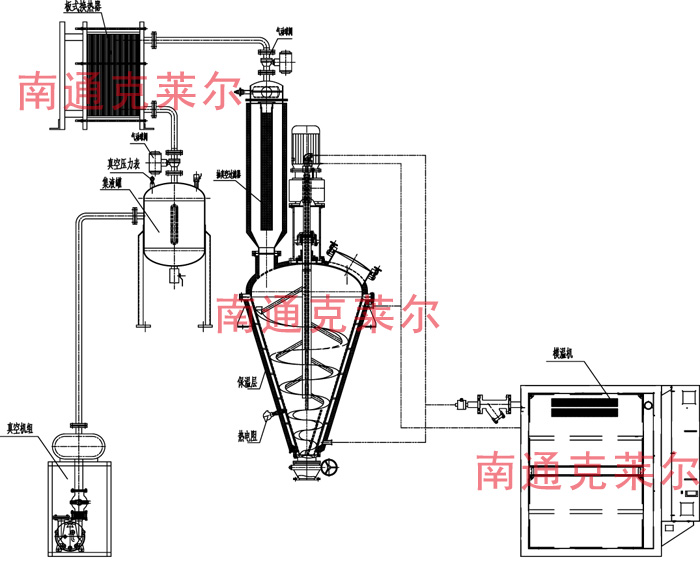 锥形螺带真空干燥搅拌机通常应用于粉料、颗粒状物料、浆料或粘稠体的混合、搅拌、可配备喷液喷淋系统,可按用户要求设计成真空状态、带压状态、加热或冷却等工艺条件,满足各种工艺状况下物料的混合、搅拌。