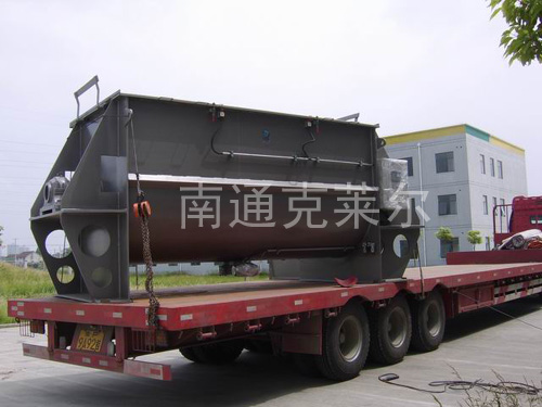 由克莱尔南通工厂承制的重庆江南化工有限公司的大型卧式螺带混合机近日加工制造完毕并通过验收,已派专车发往重庆生产基地。